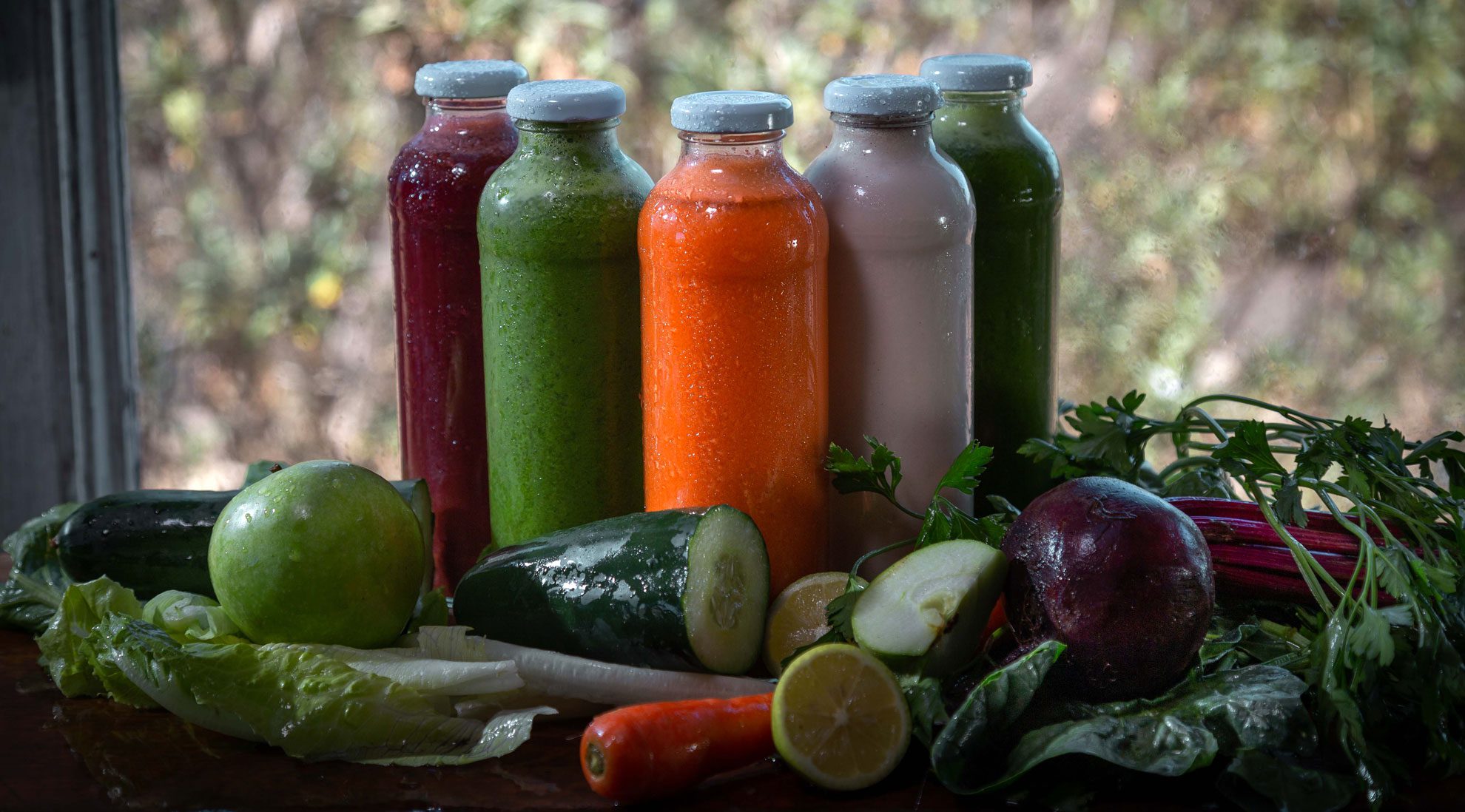 Recibirás cinco (5) jugos cada día, estos suman alrededor de 1200 calorías en total. Los jugos los deberías tomar en el siguiente orden: apio, rojo, verde, naranjo, blanco.